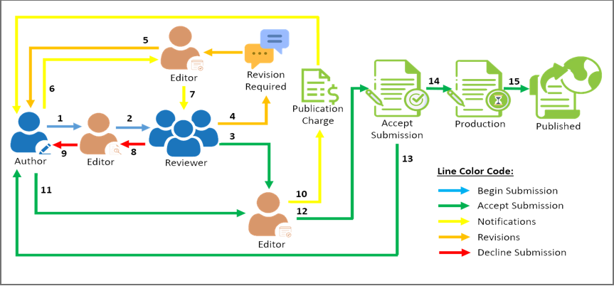 - The author submits the manuscript via OJS